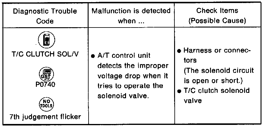 TORQUE CONVERTER CLUTCH SOLENOID VALVE CIRCUIT CHECKDIAGNOSTIC CHART