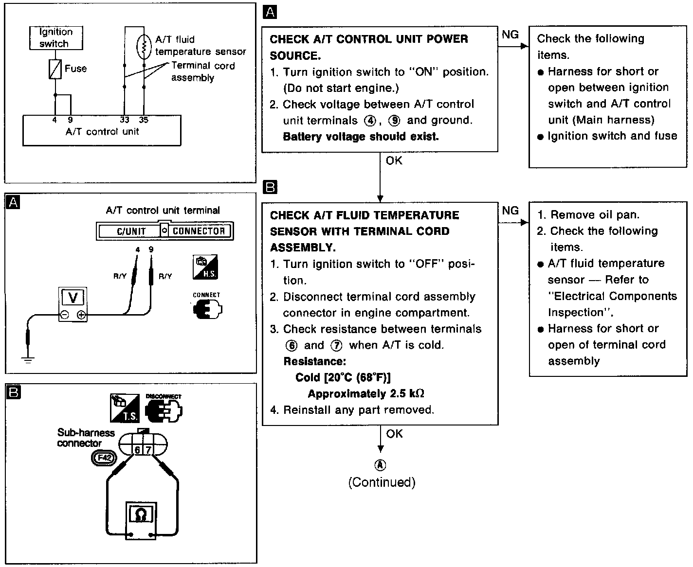 A/T FLUID TEMPERATURE SENSOR CIRCUIT AND A/T CONTROL UNIT POWER SOURCE CIRCUIT CHECKSDIAGNOSTIC CHART