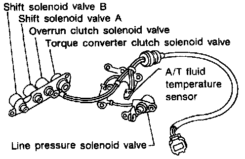 The A/T fluid temperature sensor detects the ATF temperature and sends a signal to the A/T control unit.