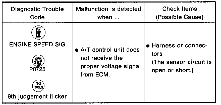 The engine speed signal is sent from the ECM to the A/T control unit.