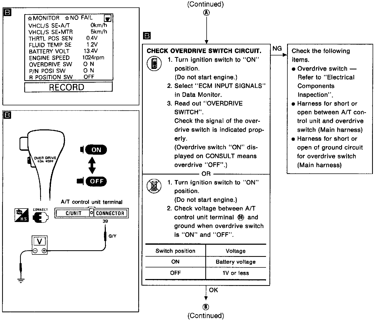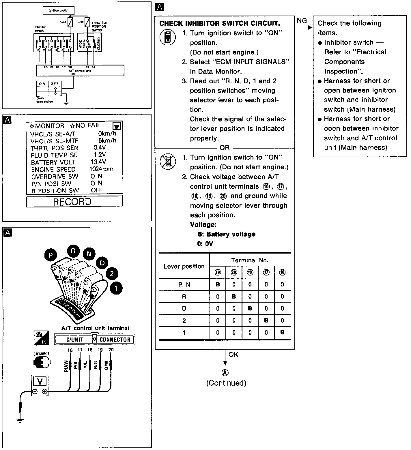 INHIBITOR, OVERDRIVE AND THROTTLE POSITION SWITCH CIRCUIT CHECKSDIAGNOSTIC CHART