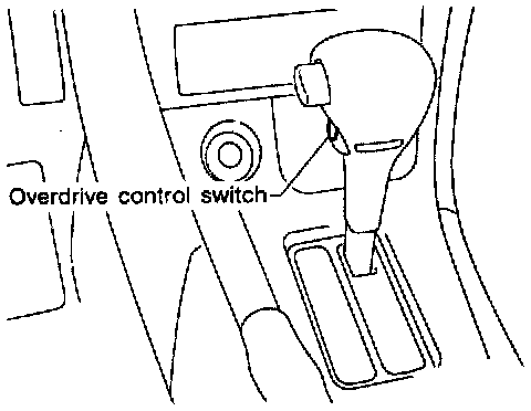 3) Drive vehicle under the following conditions: Selector lever in D, OD control switch in "OFF" position, vehicle speed higher than 10 km/h (6 MPH), throttle opening greater than 1/2 of the full throttle position and driving for more than 5 seconds.