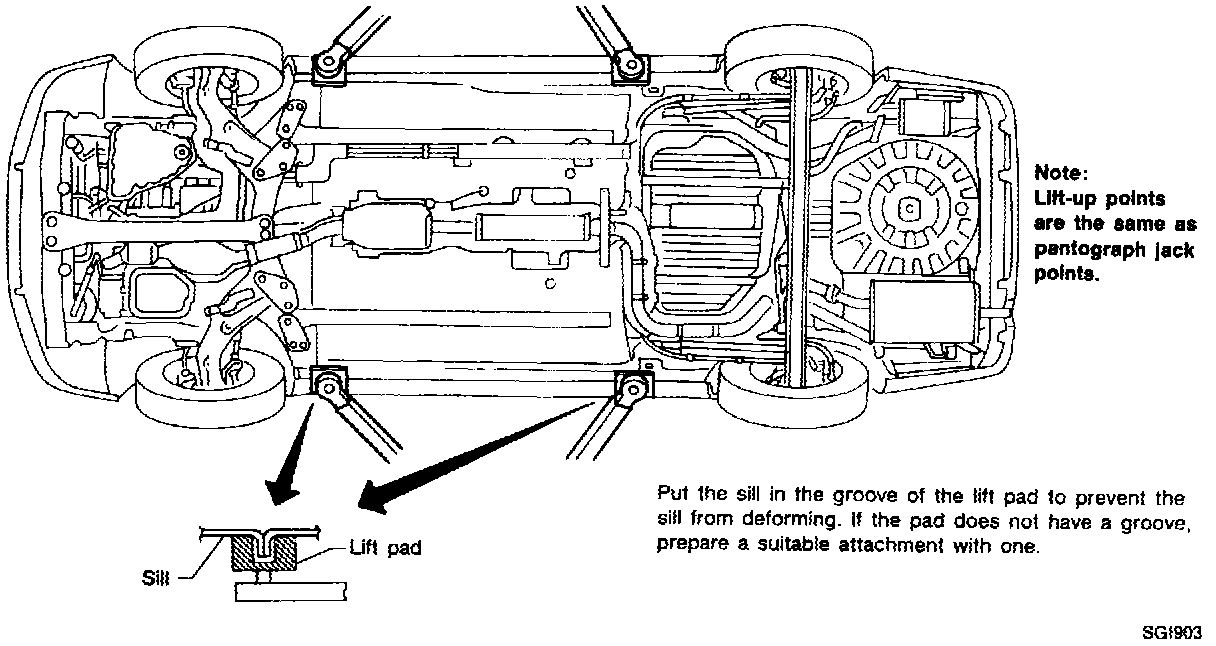 WARNING: When lifting the vehicle, open the lift arms as wide as possible and ensure that the front and rear of the vehicle are well balanced.
