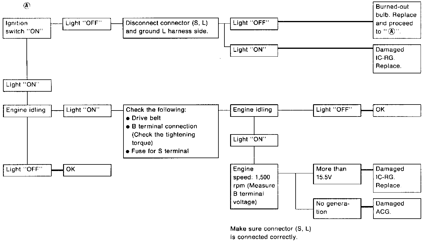 3. When reaching "Damaged ACG", remove alternator from vehicle and disassembly, inspect and correct or replace faulty parts.