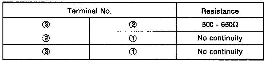 Check resistance between terminals (1), (2) and (3)