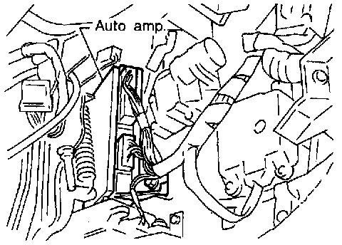 The auto amplifier has a built-in microcomputer which processes information sent from various sensors needed for air conditioner operation. The air mix door motor, mode door motor, intake door motor, blower motor and compressor are then controlled. The auto amplifier is unitized with control mechanisms. Signals from various switches and Potentio Temperature Control (PTC) are directly entered into auto amplifier.