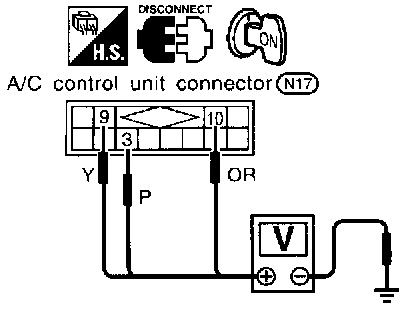 Check power supply circuit for A/C control unit with ignition switch ON.