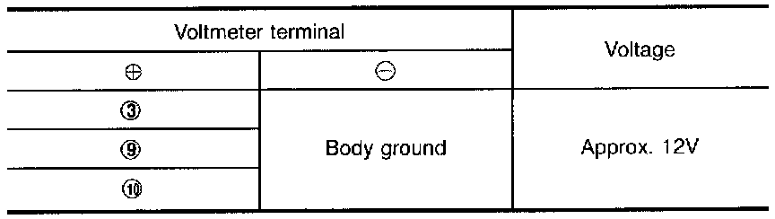 Measure Voltage across terminal Nos. (3), (9), (10) and body ground.