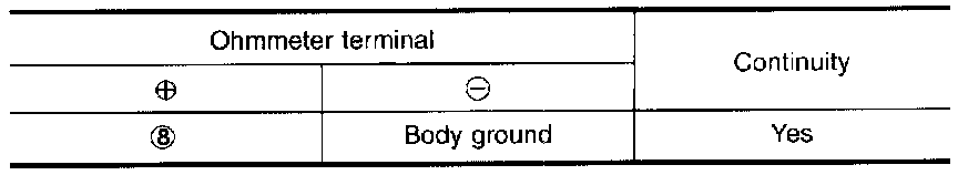 Check for continuity between terminal No. (8) and body ground.