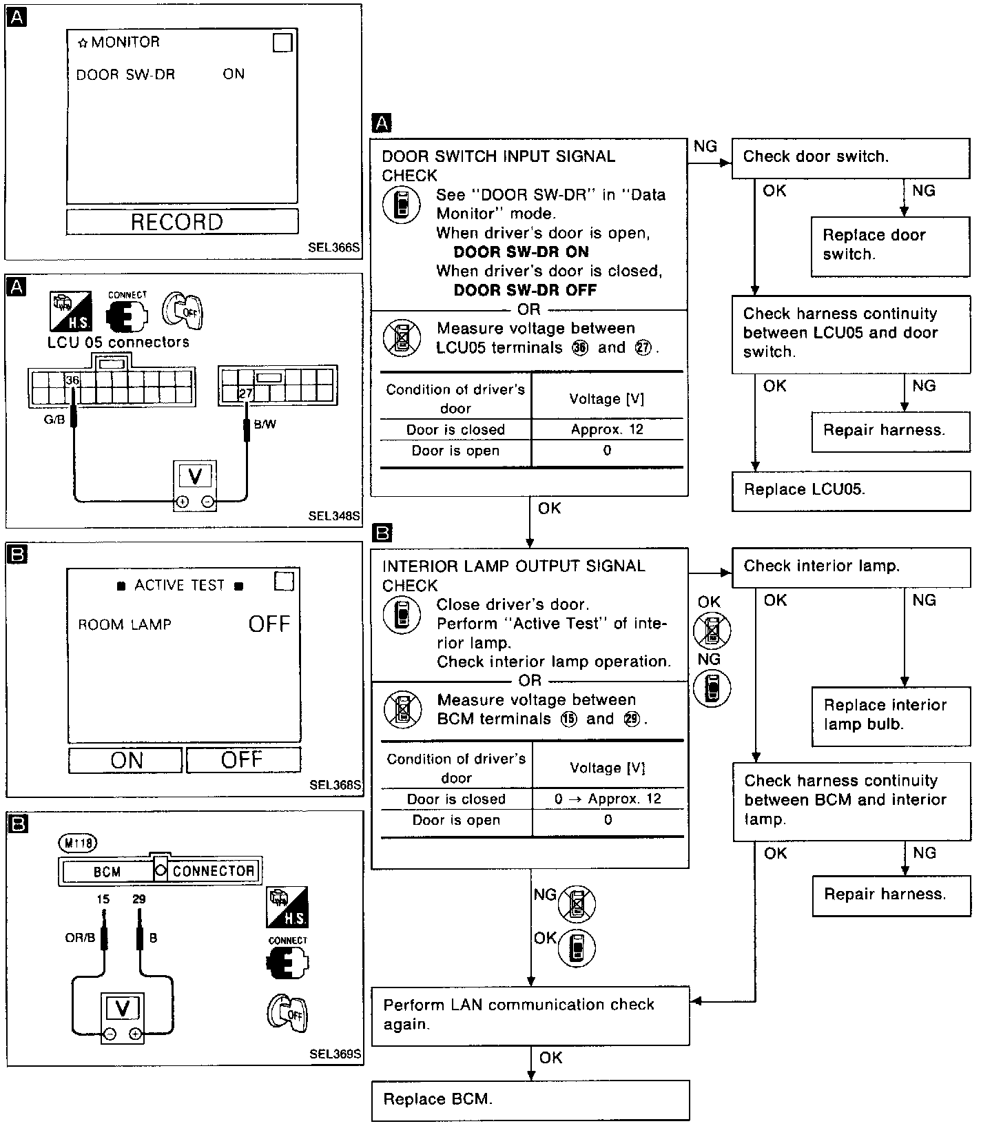 SYMPTOM: Interior lamp does not fade out after driver's door is closed.