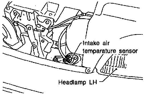 The intake air temperature sensor is mounted to the air cleaner housing. The sensor detects intake air temperature and transmits a signal to the ECM.