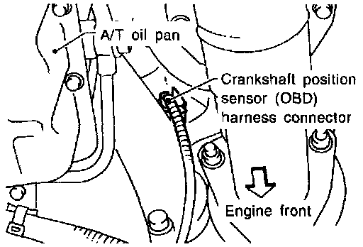 The crankshaft position sensor (OBD) is located on the transmission housing facing the gear teeth (cogs) of the drive plate. It detects the fluctuation of the engine revolution.