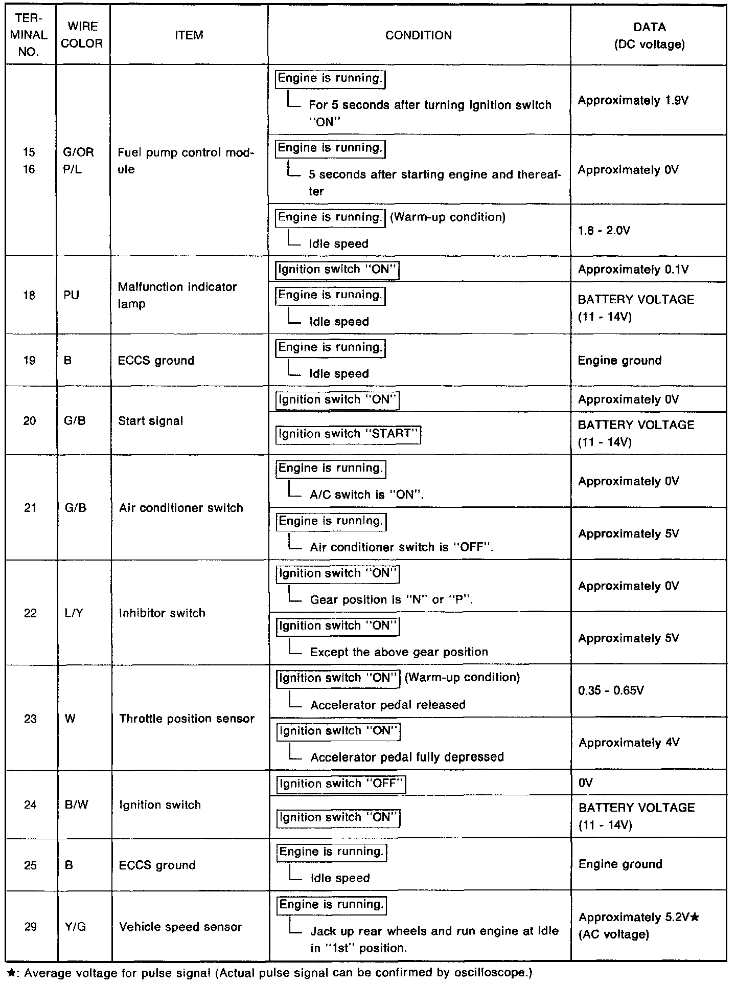- Specification data are reference values, and are measured between each terminal and (25) (ECCS ground) with a voltmeter.