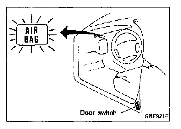 5. If "AIR BAG"warning lamp operates as shown in No. 1 in the chart above,press driver's door switch at least 5 times within 7 seconds after turning ignition switch "on". SRS is not in User mode.