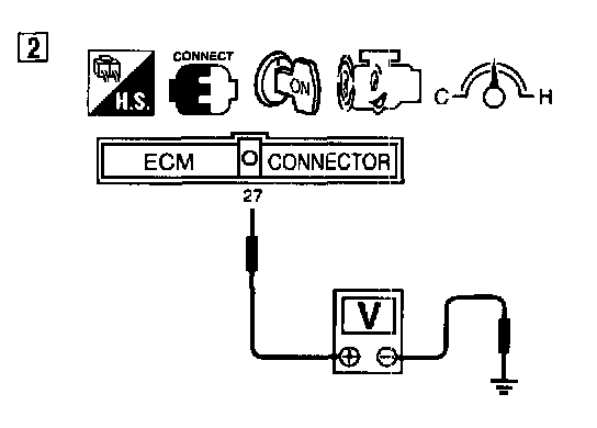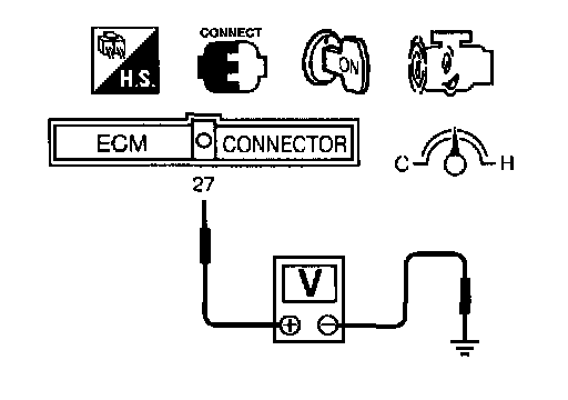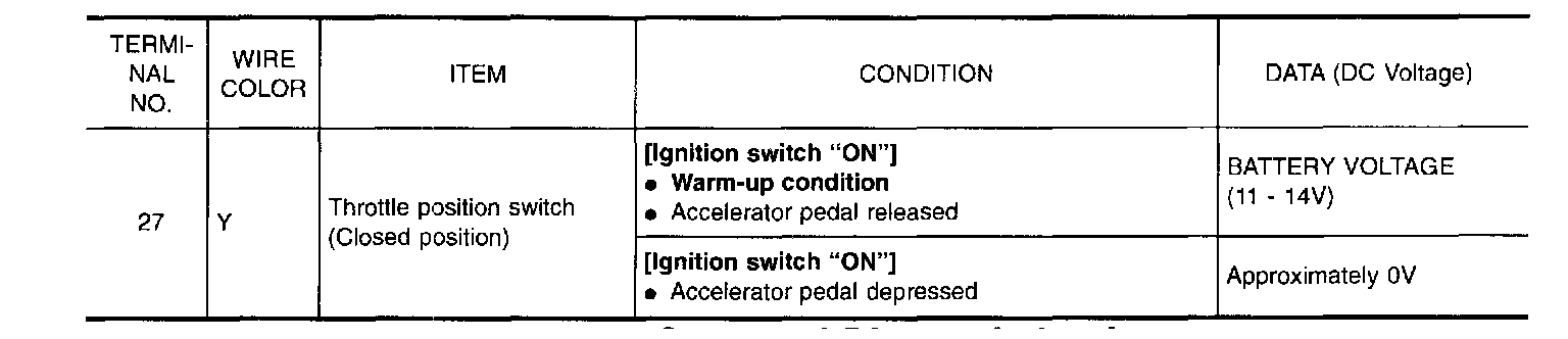 2. Check the voltage between ECM terminal 27 (Closed throttle position switch signal) and ground under the following conditions.