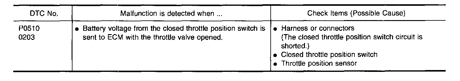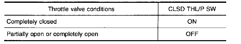 A closed throttle position switch and wide open throttle position switch are built into the throttle position sensor unit. The wide open throttle position switch is used only for A/T control.