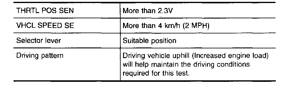 4. Drive the vehicle for at least 5 consecutive seconds under the following condition.