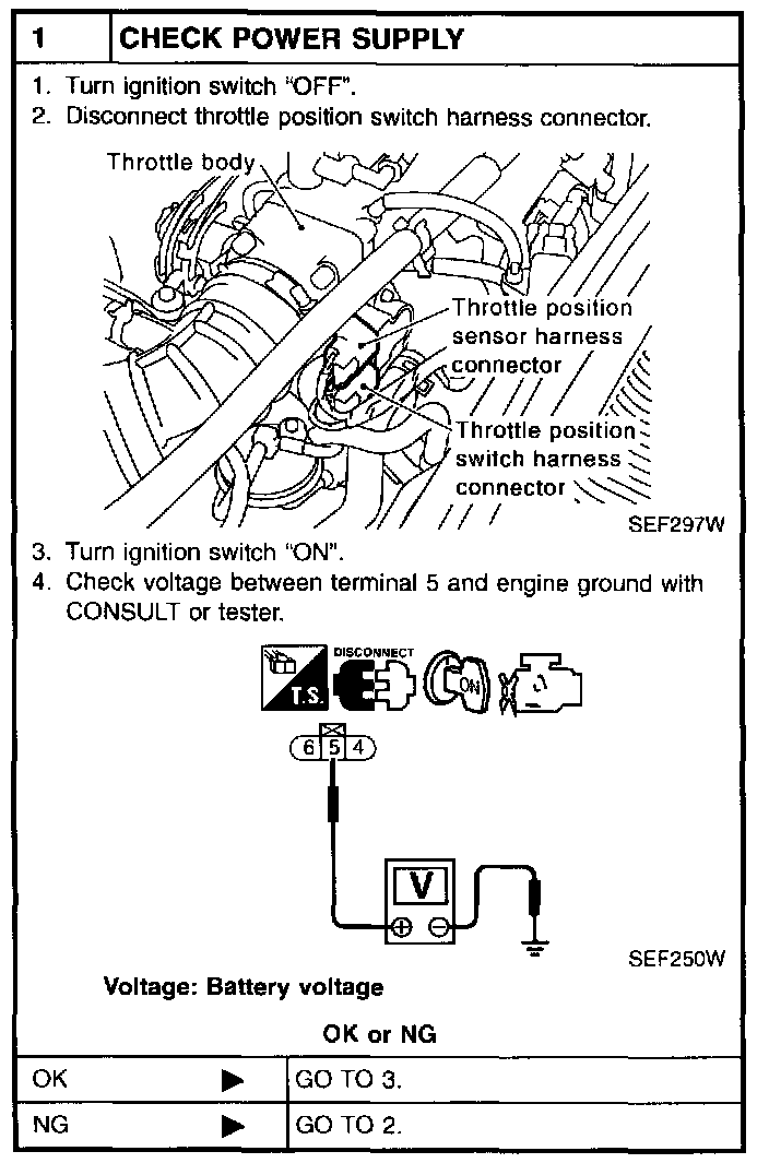 If NG, adjust closed throttle position switch. Refer to "Basic Inspection".