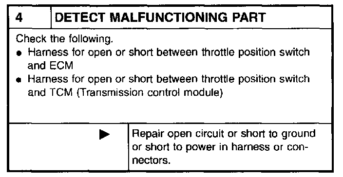 6 CHECK CLOSED THROTTLE POSITION SWITCH: