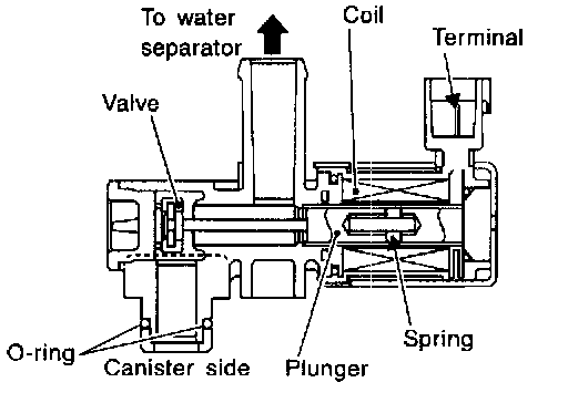 A plunger will then move to seal the canister vent. The ability to seal the vent is necessary for the on board diagnosis of other evaporative emission control system components.