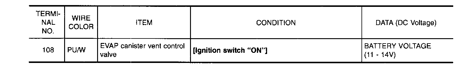 Specification data are reference values and are measured between each terminal and 43 (ECM ground).