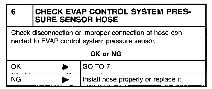 6 CHECK EVAP CONTROL SYSTEM PRESSURE SENSOR HOSE: