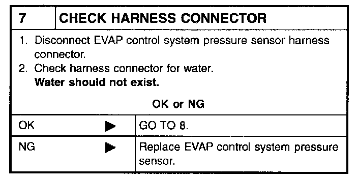 8 CHECK EVAP CONTROL SYSTEM PRESSURE SENSOR AND CIRCUIT: