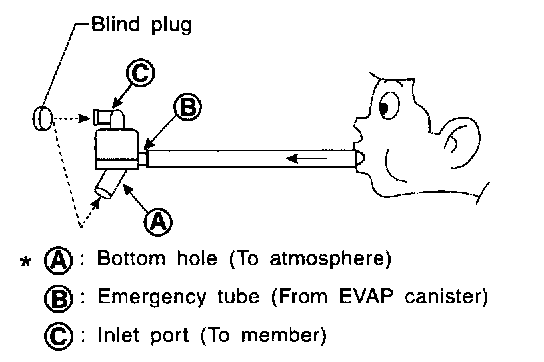 4. Check that A and C are not clogged by blowing air into B with A, and then C plugged.