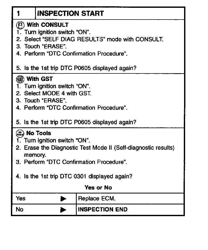 4. Perform "Diagnostic Test Mode II" (Self-diagnostic results) with ECM.