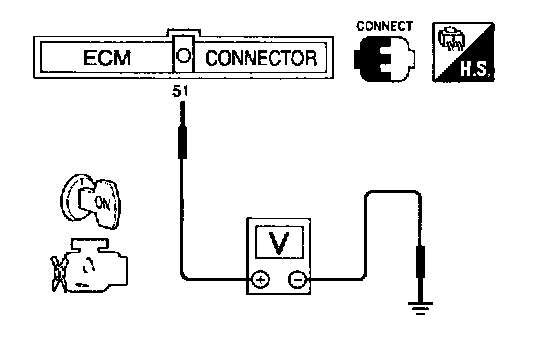 2. Verify that voltage between ECM terminal 51 (Engine coolant temperature sensor signal) is more than 2.7 V.