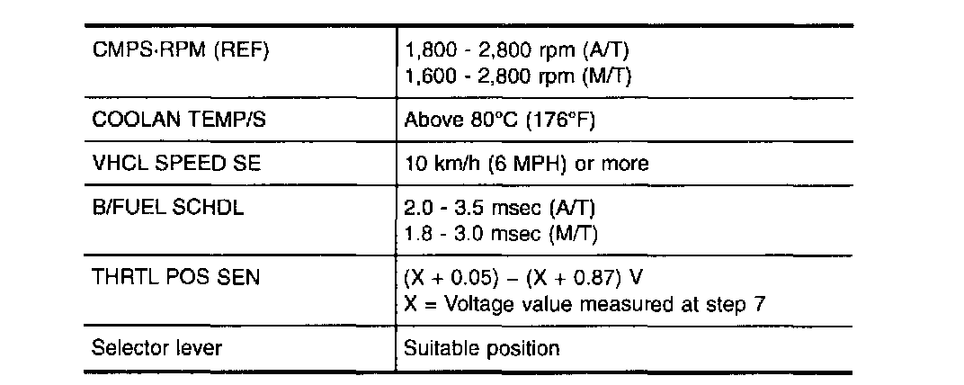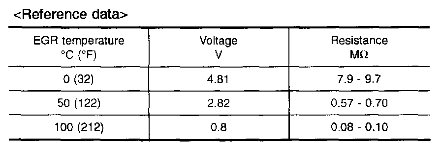 4. Read "EGR TEMP SEN" at about 1,500 rpm while holding the EGR valve in full open position by hand.