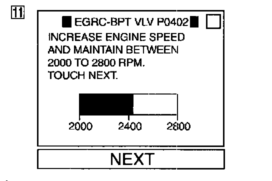 11. Raise engine speed to 2,000 to 2,800 rpm under no-load and hold it. Then touch "NEXT" on CONSULT screen.