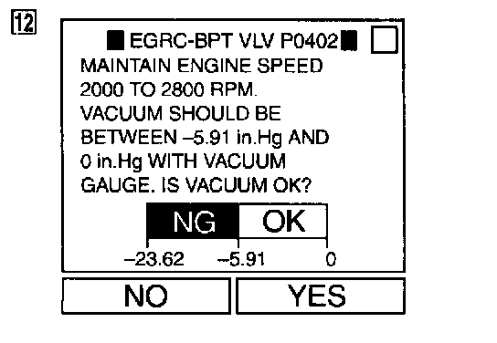 12. Check vacuum gauge while keeping engine speed at 2,000 to 2,800 rpm.