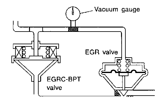 1. Install vacuum gauge between EGRC-BPT valve and EGR valve as shown in the illustration.
