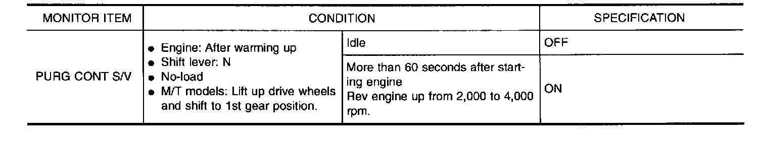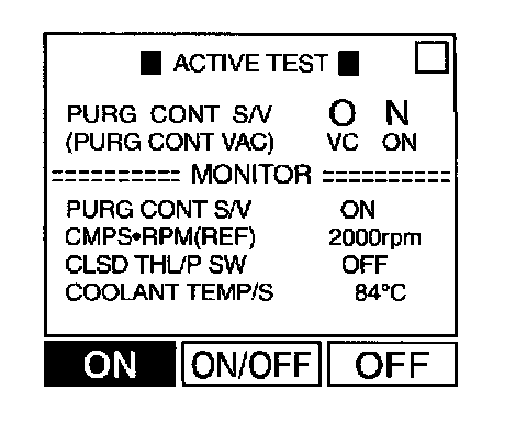 3. Select "PURG CONT S/V" of "ACTIVE TEST" mode with CONSULT.