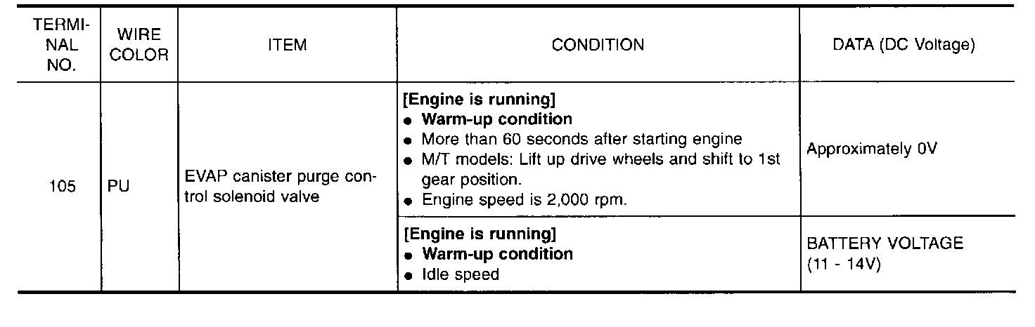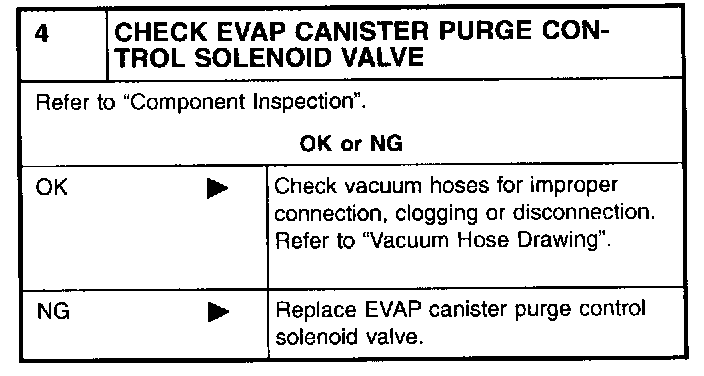 4 CHECK EVAP CANISTER PURGE CONTROL SOLENOID VALVE: