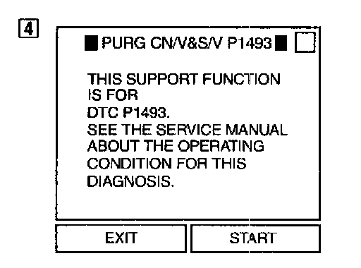 4. Select "PURG CN/V & S/V P1493" of "EVAPORATIVE SYSTEM" in "DTC WORK SUPPORT" mode with CONSULT.