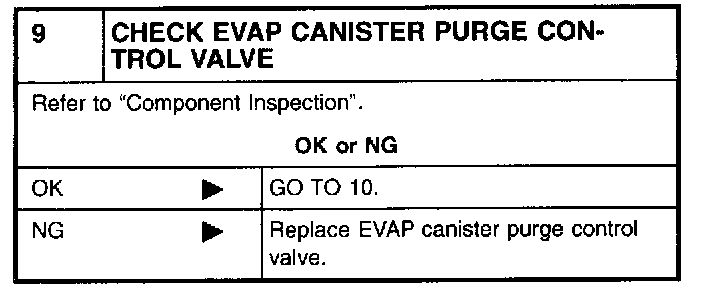 9 CHECK EVAP CANISTER PURGE CONTROL VALVE: