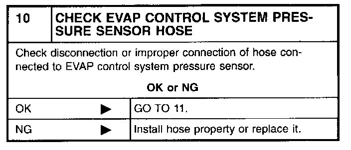 10 CHECK EVAP CONTROL SYSTEM PRESSURE SENSOR HOSE: