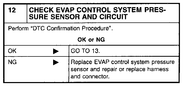 12 CHECK EVAP CONTROL SYSTEM PRESSURE AND CIRCUIT: