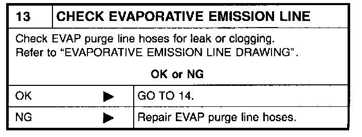13 CHECK EVAPORATIVE EMISSION LINE: