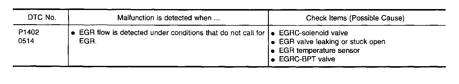 If EGR temperature sensor detects EGR flow under the condition that does not call for EGR, a high-flow malfunction is diagnosed.