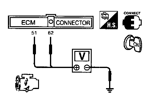3. Check that voltage between ECM terminal 62 (EGR temperature sensor signal) and ground is less than 4.8 V.