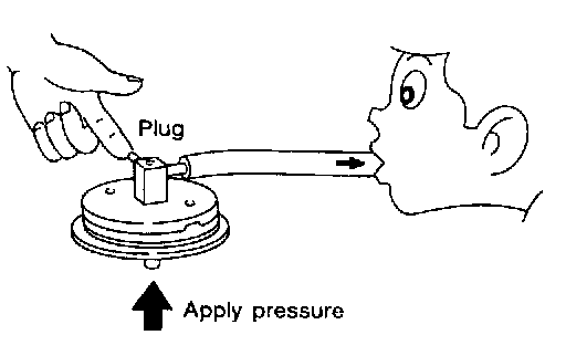 2. Vacuum from the other port and check for leakage while applying a pressure above 0.981 kPa (100 mmH2O, 3.94 inH2O) from under EGRC-BPT valve.