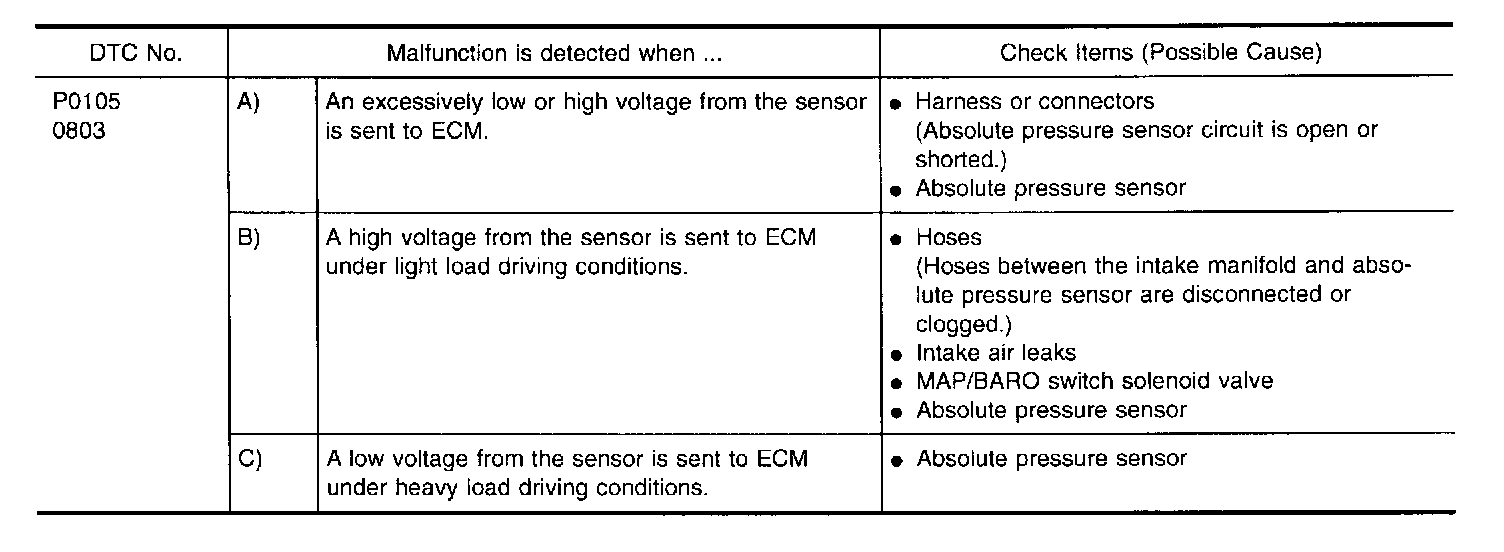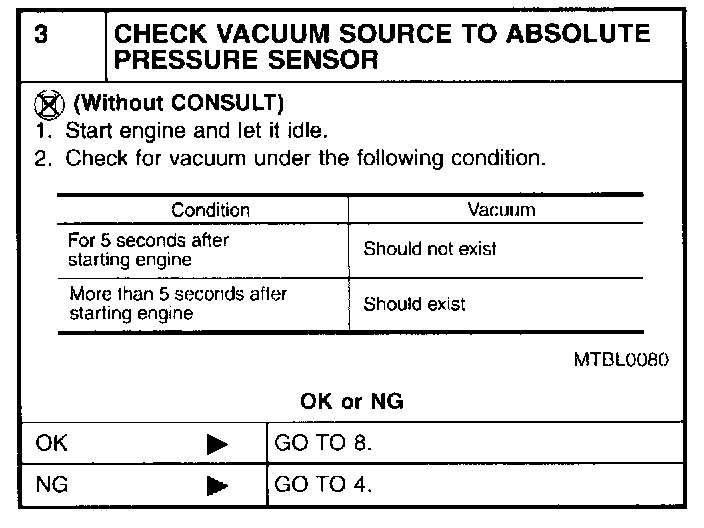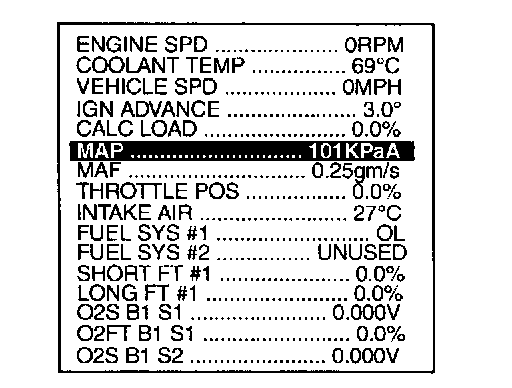 3. Make sure that the pressure of absolute pressure sensor signal is more than 46 kPa (0.47 kg/sq.cm, 6.7 psi).