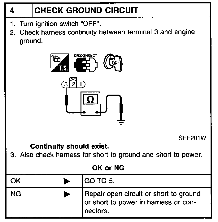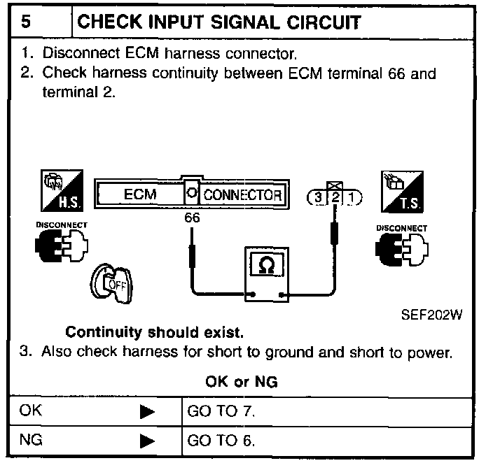 5. Turn ignition switch "OFF", wait at least 5 seconds and then turn "ON".