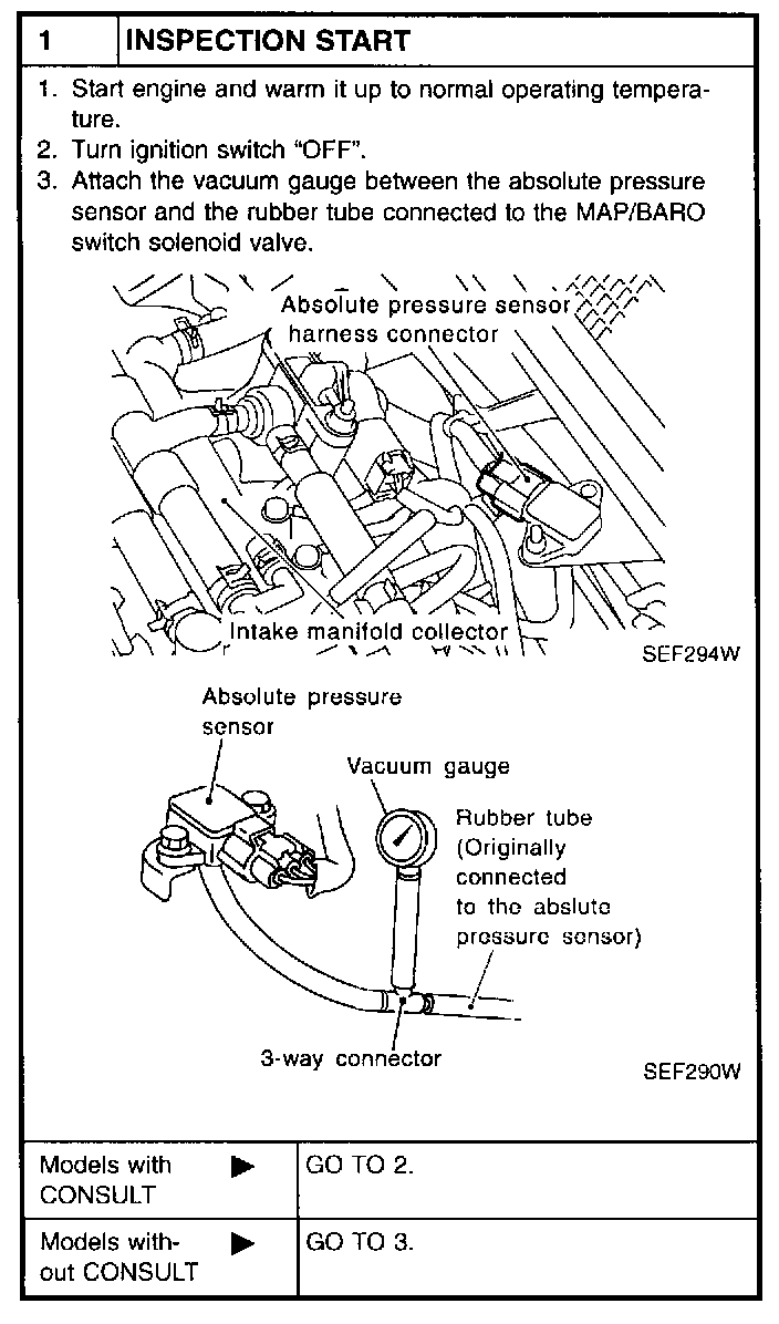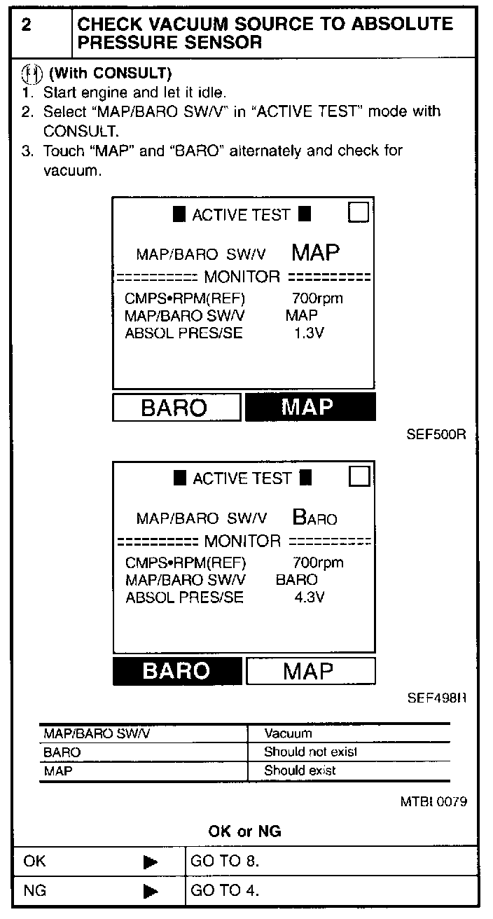 2. Select "DATA MONITOR" mode with CONSULT and check "ABSOL PRES/SE" signal.