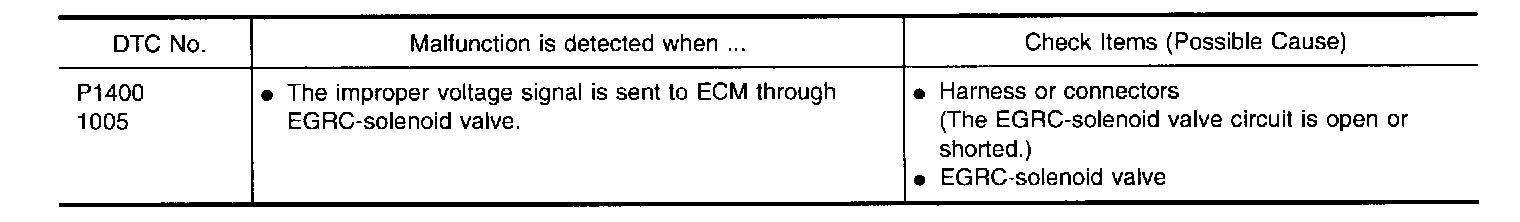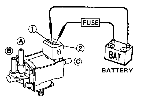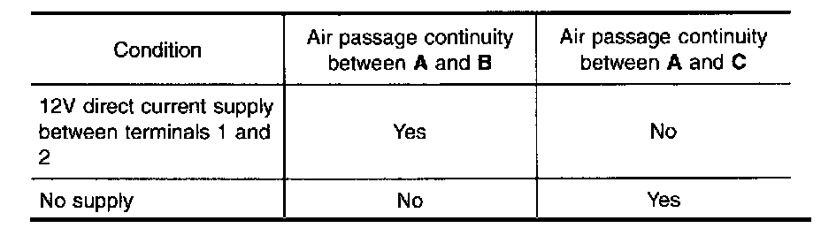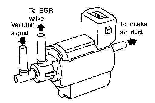 The EGRC-solenoid valve responds to signals from the ECM. When the ECM sends an ON (ground) signal, the coil in the solenoid valve is energized. The vacuum signal passes through the solenoid valve. The signal then reaches the EGR valve. When the ECM sends an OFF signal, a plunger will then move to cut the vacuum signal from the intake manifold collector to the EGR valve.