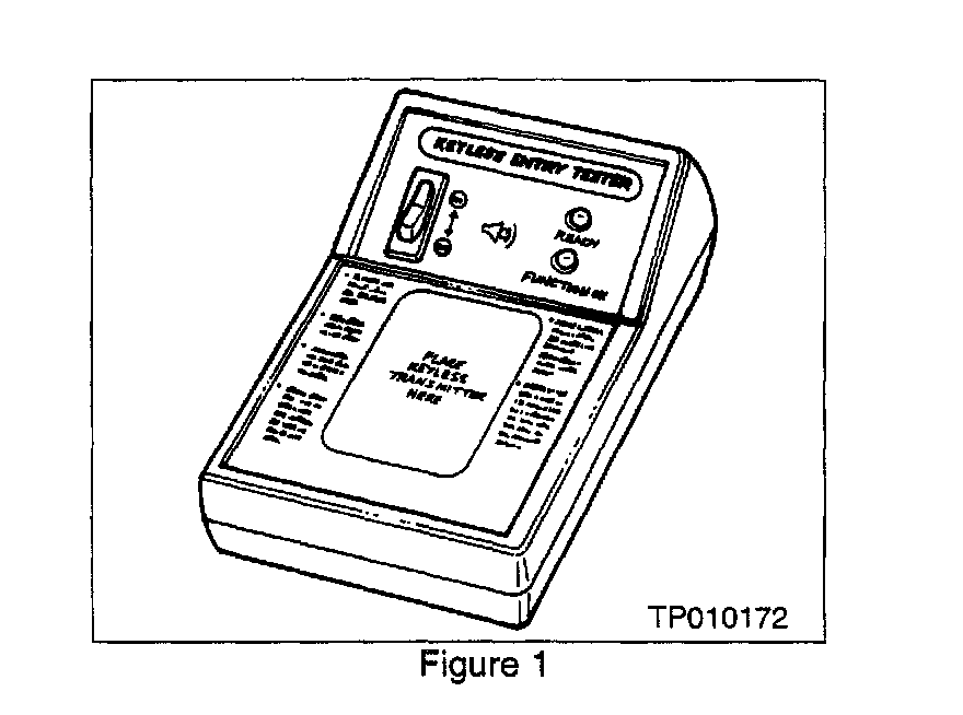 A new Essential Tool (Kent-Moore J-43241) has been released. This tool (see Figure 1) is designed to test for inoperative or improperly operating multi-remote key fobs.