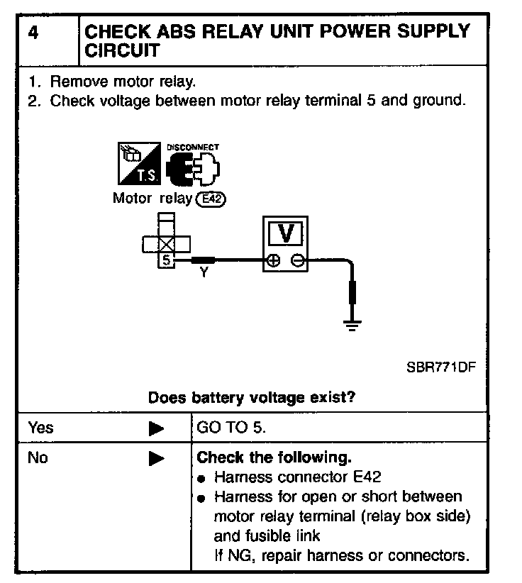 4 CHECK ABS RELAY UNIT POWER SUPPLY CIRCUIT: